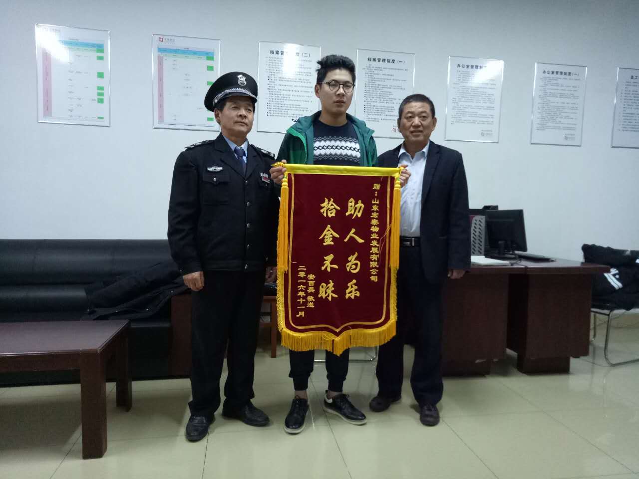 11月16日傍晚,一面繡有“拾金不昧助人為樂”8個金光大字的錦旗被一位充滿感激之情的學(xué)生送到宏泰物業(yè)泰山醫(yī)學(xué)院校本部辦公室。