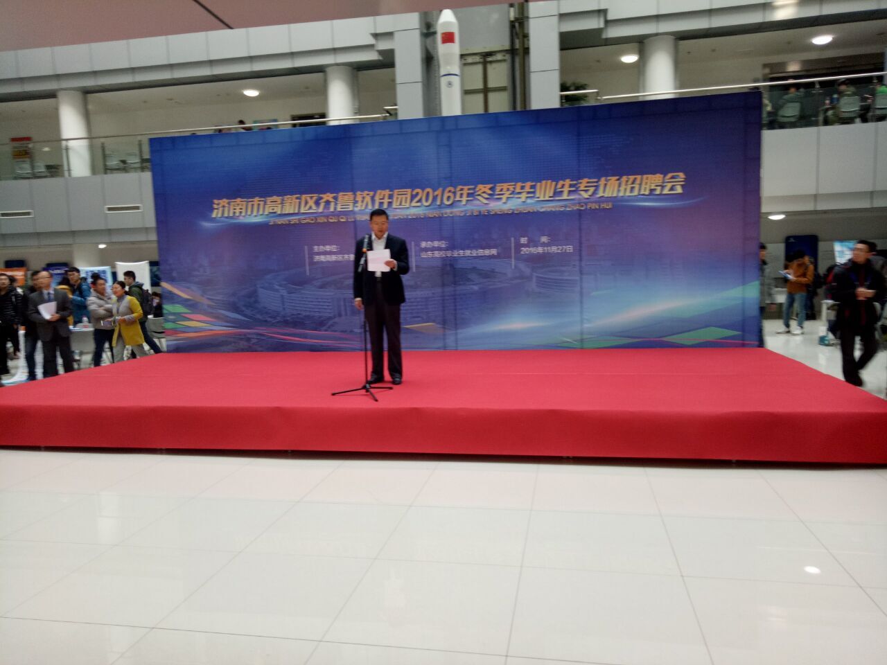 11月27日,濟南高新區(qū)齊魯軟件園2016年冬季畢業(yè)專場招聘會成功舉辦。此次招聘會由軟件園發(fā)展中心和山東高校畢業(yè)生信息網(wǎng)聯(lián)合舉辦。集雙方優(yōu)勢,為園區(qū)企業(yè)提供省時、省力、省成本,集中展示企業(yè)實力、傳遞企業(yè)文化、深耕企業(yè)品牌的招聘推介機會;廣大畢業(yè)生近距離接觸園區(qū)產(chǎn)業(yè)氛圍和企業(yè)文化,進而加快促成企業(yè)與畢業(yè)生的就業(yè)意向。招聘會上齊魯軟件園發(fā)展中心朱增利主任為開幕式致辭,山東高校畢業(yè)生就業(yè)信息網(wǎng)李兆印董事長發(fā)言,山東理工大學(xué)計算機學(xué)院書記及山東大學(xué)、山東師范大學(xué)、山東科技大學(xué)、山東建筑大學(xué)等高校的就業(yè)處領(lǐng)導(dǎo)老師親臨現(xiàn)場。