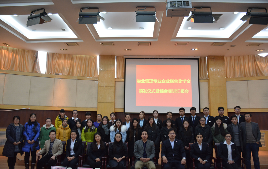 山東城建學(xué)院物業(yè)管理專業(yè)校企聯(lián)合獎(jiǎng)學(xué)金頒發(fā)儀式暨綜合實(shí)訓(xùn)匯報(bào)會(huì),于2016年12月13日下午13:30在學(xué)院辦公樓三樓多功能廳舉行。學(xué)院工程管理系李元美主任、任新華副主任、李杰副書記、辦公室李允峰主任、教學(xué)管理科馬曉科長(zhǎng)、物業(yè)管理專業(yè)負(fù)責(zé)人楊學(xué)英老師、田慧老師、石懷鵬老師、邵帥老師及公司行政人事中心總監(jiān)張緒作為主講嘉賓出席本次活動(dòng)。