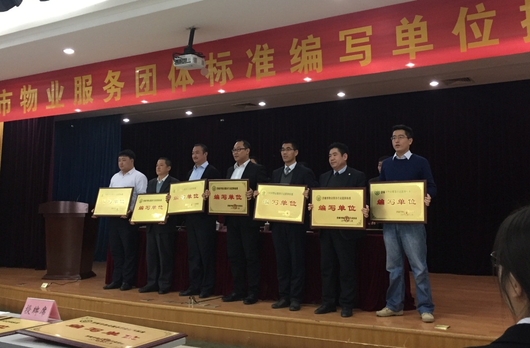 12月30日上午9點,濟南市物業(yè)服務團體標準編寫單位授牌儀式在房產(chǎn)大廈四樓會議室順利舉辦。質(zhì)監(jiān)局馬曉鷗科長、市局物業(yè)處黃安平處長、協(xié)會張平會長、趙明秘書長、公司總裁韓玉峰,及其他各企業(yè)負責人出席了此次授牌儀式。