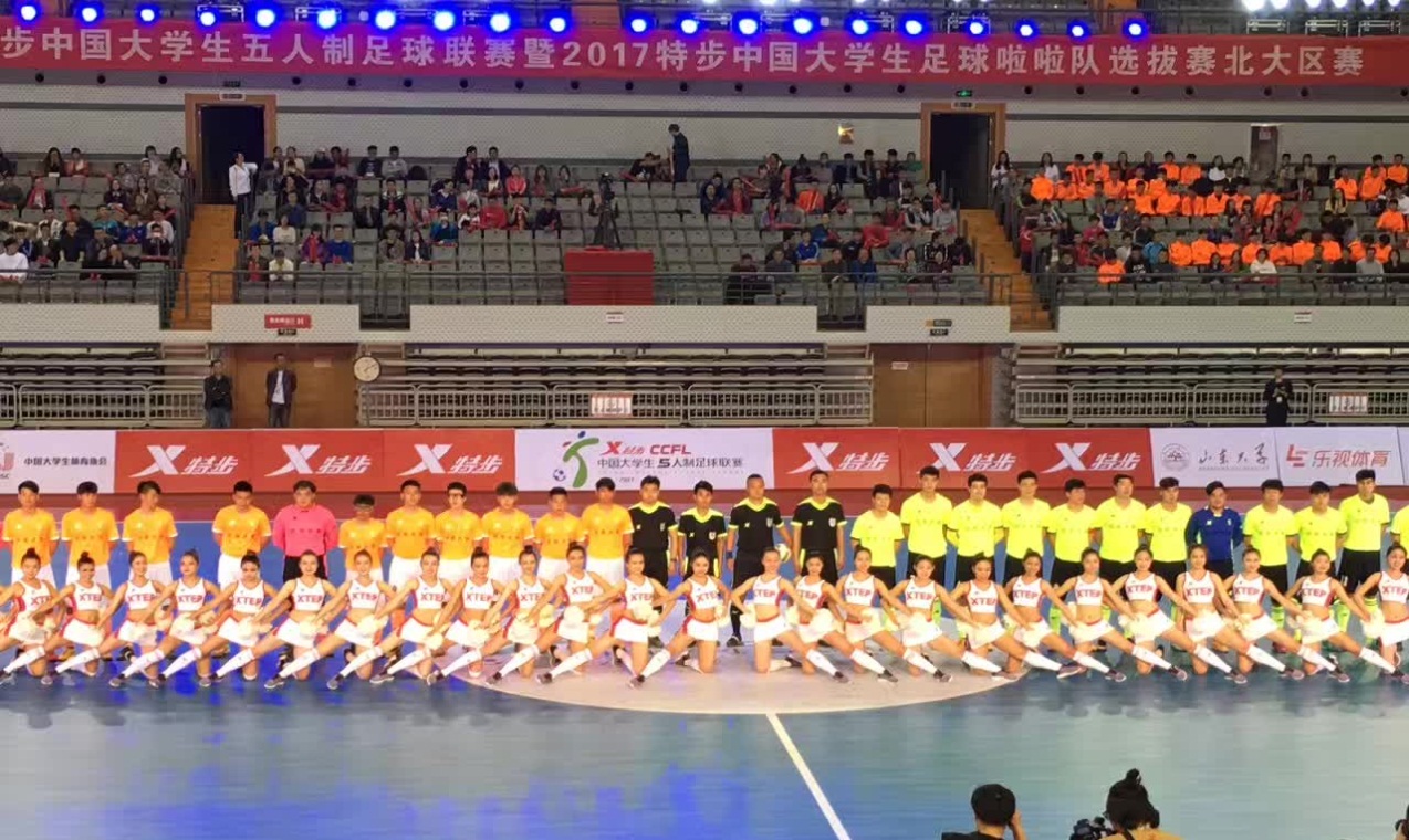 中國大學生五人制足球聯(lián)賽暨中國大學生足球啦啦隊選拔賽吸引了全國近400支球隊報名參加。由特步(中國)有限公司協(xié)辦,虎撲(上海)文化傳播股份有限公司承辦,中國大學生體育協(xié)會提供賽事指導。來自山東大學、北京體育大學等高校的12支足球代表隊,以及山東師范大學、西安電子科技大學等高校的11支啦啦隊參賽。4月13日在山大體育館開幕,山東大學黨委副書記仝興華在開幕式致辭中表示,本次比賽的舉辦既是對中國足球改革發(fā)展總體方案近期目標的貫徹落實,也是對《全民健身計劃(2016-2020)》實施的充分響應。