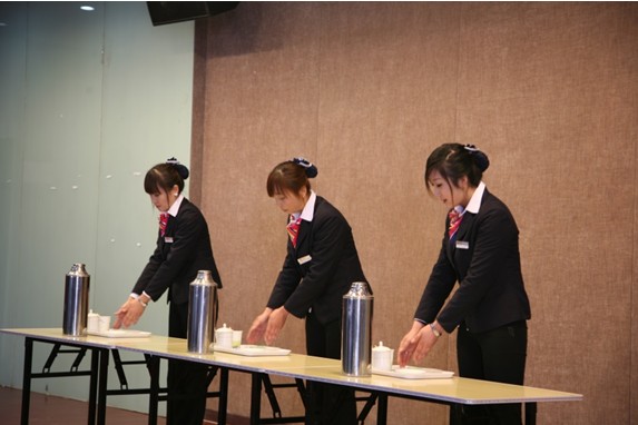 第一項會務(wù)服務(wù)展示(團體賽)環(huán)節(jié)中,西城管業(yè)、數(shù)娛廣場管業(yè)、西客站綜合體管業(yè)三個管業(yè)各自選派三名客服人員依次登臺,對會務(wù)服務(wù)進行展示,嫻熟優(yōu)雅的服務(wù)形象贏得了陣陣掌聲。接下來秩序維護形象展示中,各代表隊順次向大家演示了隊列、執(zhí)勤、車輛指揮手勢指揮等基礎(chǔ)服務(wù)動作,颯爽英姿、標(biāo)準(zhǔn)手勢,展示了西區(qū)各管業(yè)良好形象。