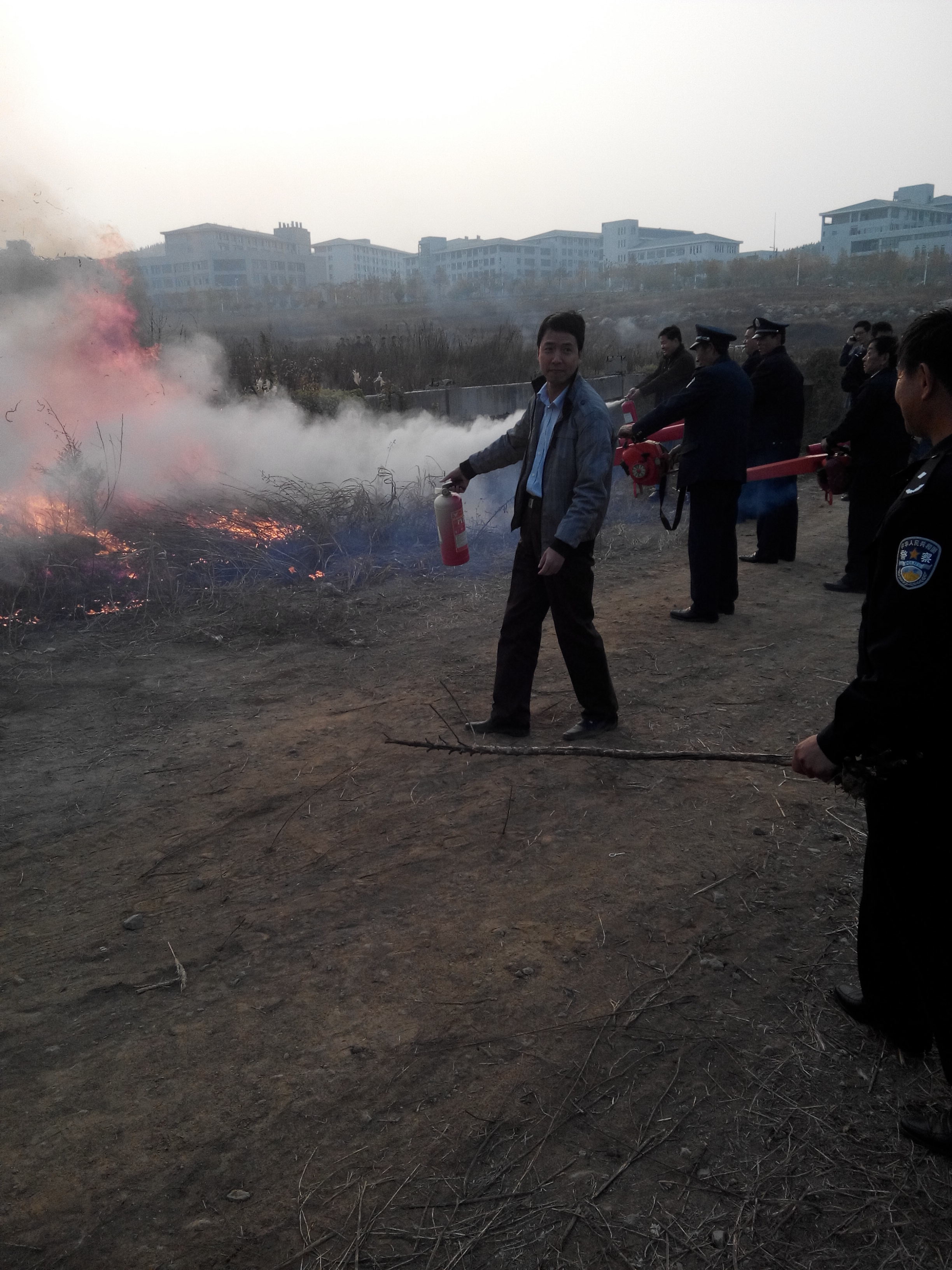 下午15:00,保衛(wèi)處石處長(zhǎng)進(jìn)行活動(dòng)動(dòng)員,保衛(wèi)處邵科長(zhǎng)講解滅火器使用知識(shí),我公司高隊(duì)長(zhǎng)講解滅火風(fēng)機(jī)使用知識(shí)。全體人員到達(dá)活動(dòng)地點(diǎn),石處長(zhǎng)命令點(diǎn)火,全員用滅火器、滅火風(fēng)機(jī)進(jìn)行滅火,整個(gè)演習(xí)過(guò)程井井有條。16:05演習(xí)活動(dòng)結(jié)束,取得圓滿成功。