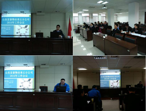 2015年1月21日,山東宏泰物業(yè)章丘分公司2015年度工作會(huì)議在4100辦公區(qū)2號(hào)樓質(zhì)監(jiān)局401會(huì)議室召開。公司總裁韓玉峰、企業(yè)發(fā)展中心總經(jīng)理盧玉珠、分公司各項(xiàng)目負(fù)責(zé)人及職能部門負(fù)責(zé)人參加會(huì)議。