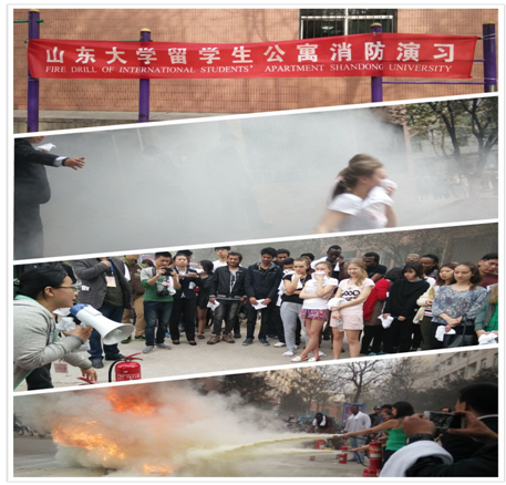 2015年3月山大中心校區(qū)留學(xué)生公寓消防演習(xí),演習(xí)主題:遠(yuǎn)離火災(zāi)、珍愛生命。