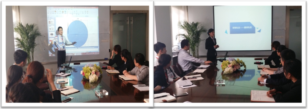 在《企業(yè)“5S“管理》的培訓(xùn)過程中,張緒總監(jiān)從當(dāng)前工作環(huán)境的現(xiàn)狀出發(fā),列舉辦公室管理中亟需解決的問題,并針對(duì)各項(xiàng)不合規(guī)范的行為提出合理的解決方案,倡導(dǎo)員工切實(shí)轉(zhuǎn)變工作作風(fēng),培養(yǎng)良好的工作習(xí)慣,營造一種舒適、整潔、干凈舒心的工作氛圍。隨后,東區(qū)事業(yè)部內(nèi)訓(xùn)師張美芝就”職場商務(wù)禮儀“中的”賓客接待“作相關(guān)培訓(xùn),通過現(xiàn)場演示使員工能夠直觀明了地了解和掌握賓客接待全過程中的禮儀知識(shí)及技巧和方法、以便大家更好地展現(xiàn)宏泰講文明、重禮儀的良好形象。