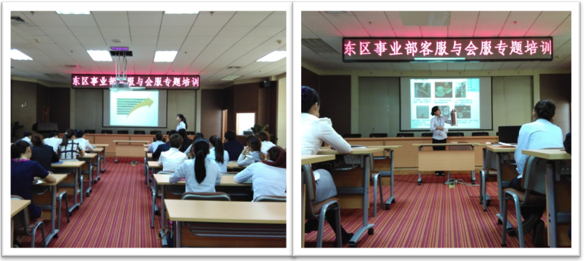 2015年5月23日,由東區(qū)事業(yè)部組織的客服與會(huì)服專題培訓(xùn)在研究院415國(guó)際報(bào)告廳順利開展。東區(qū)所屬各項(xiàng)目客服部員工及領(lǐng)班以上人員參加了該次培訓(xùn)。授課過(guò)程中,大家專心聽(tīng)講,認(rèn)真做筆記。