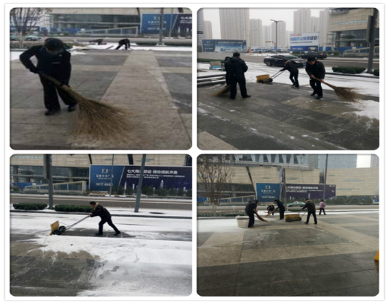因降雪越來越大,氣溫已降至零下,為保證道路不因積雪過多而結冰,我項目員工增加巡視頻率,不定時清理大廈門廳前的積雪,以保證大廈進出人員的人身安全。