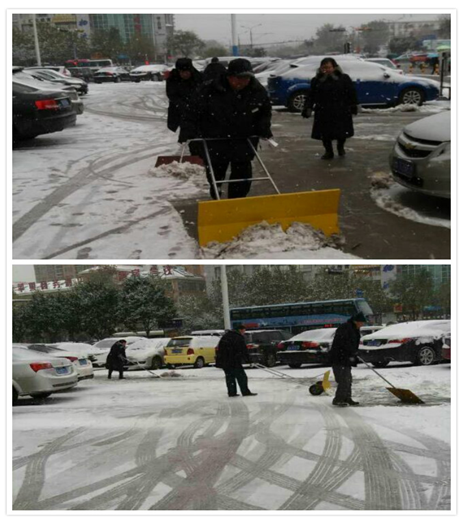 經(jīng)過一個多小時的努力,終于將所有積雪和冰塊清理完畢,保證了車場上的進(jìn)出口車輛的安全,所有員工心里也是無比的欣慰。