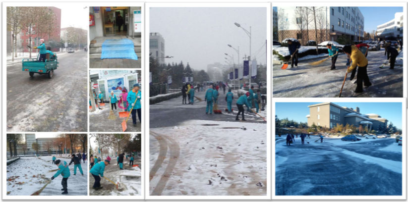 凜冽的寒風、-10℃的低溫、結(jié)冰的路面,這一個個困難擺在了我們面前,使清掃工作變得艱苦起來。員工的手和臉被凍得通紅,然而,這一切絲毫沒有影響大家的勞動熱情,各項目員工團結(jié)協(xié)作、井然有序,分工明確,干得熱火朝天,用大家的汗水讓冰雪消融。