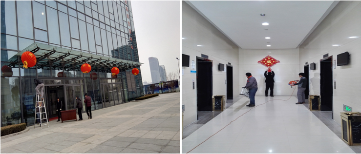 上午10時(shí)左右,為讓大廈進(jìn)出人員感受到春節(jié)的氣息,項(xiàng)目員工不畏嚴(yán)寒,在副經(jīng)理邢懷超的帶領(lǐng)下,為大廈懸掛燈籠及中國(guó)結(jié)。寒風(fēng)吹打著每個(gè)人,但我們依舊洋溢著笑容,心里依舊很溫暖。